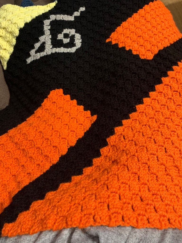 So. My sister in law sent me a picture of Naruto for reference. And then I did stripes in the way of his outfit. Is it awkward? Maybe. Is it super cool? Why yes, yes it is.